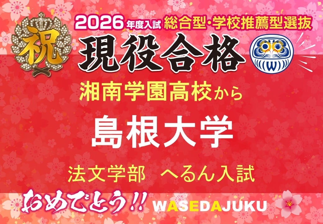 【2026年度入試 合格速報】湘南学園高校から、島根大学法文学部にへるん入試で現役合格!