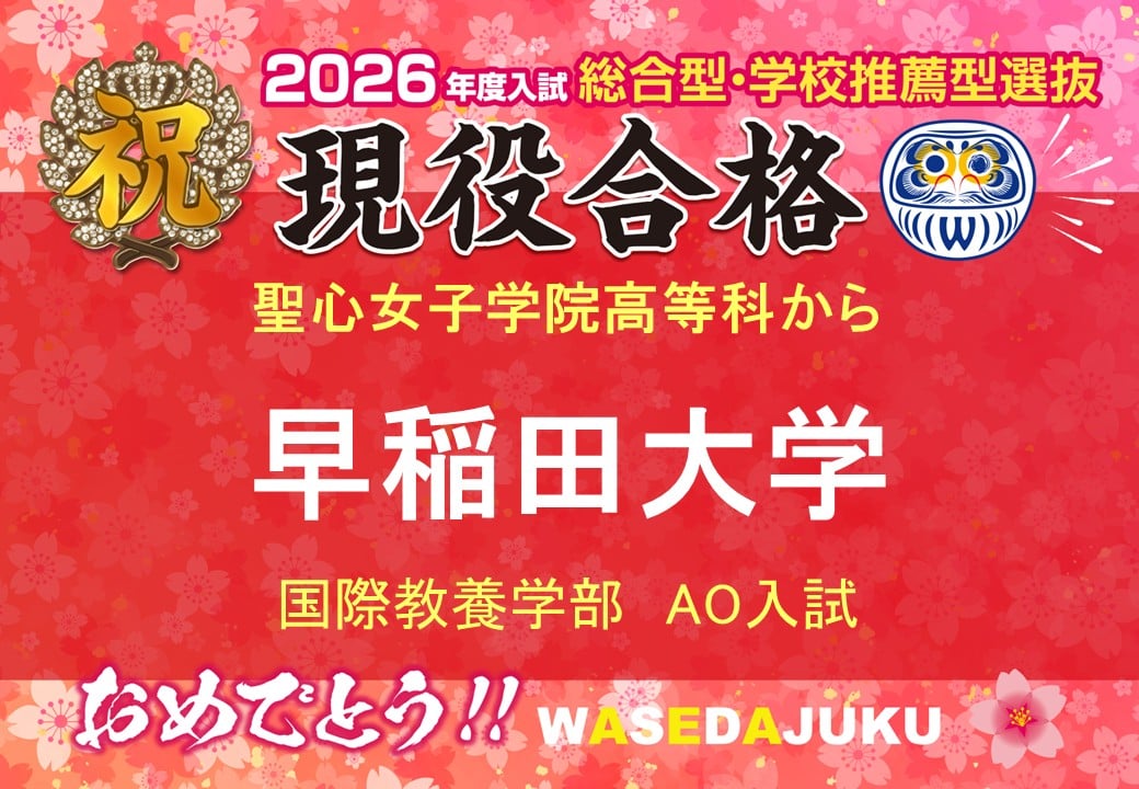 【2026年度入試 現高3生】聖心女学院高等科から、早稲田大学国際教養学部にAO入試で現役合格!