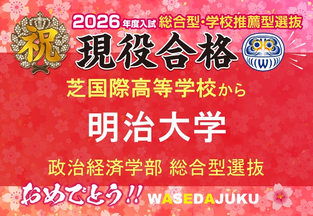 芝国際高等学校から、明治大学政治経済学部にグローバル型特別入試で見事現役合格です!
