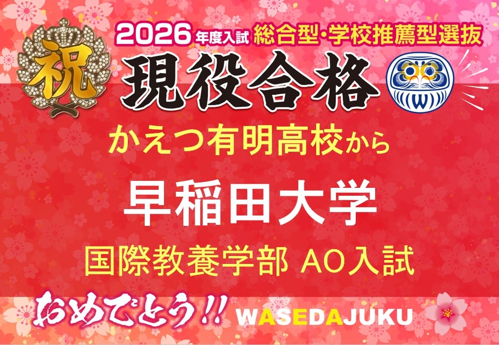 【2026年度入試 現高3生】かえつ有明高校から、早稲田大学国際教養学部へAO入試で見事現役合格!
