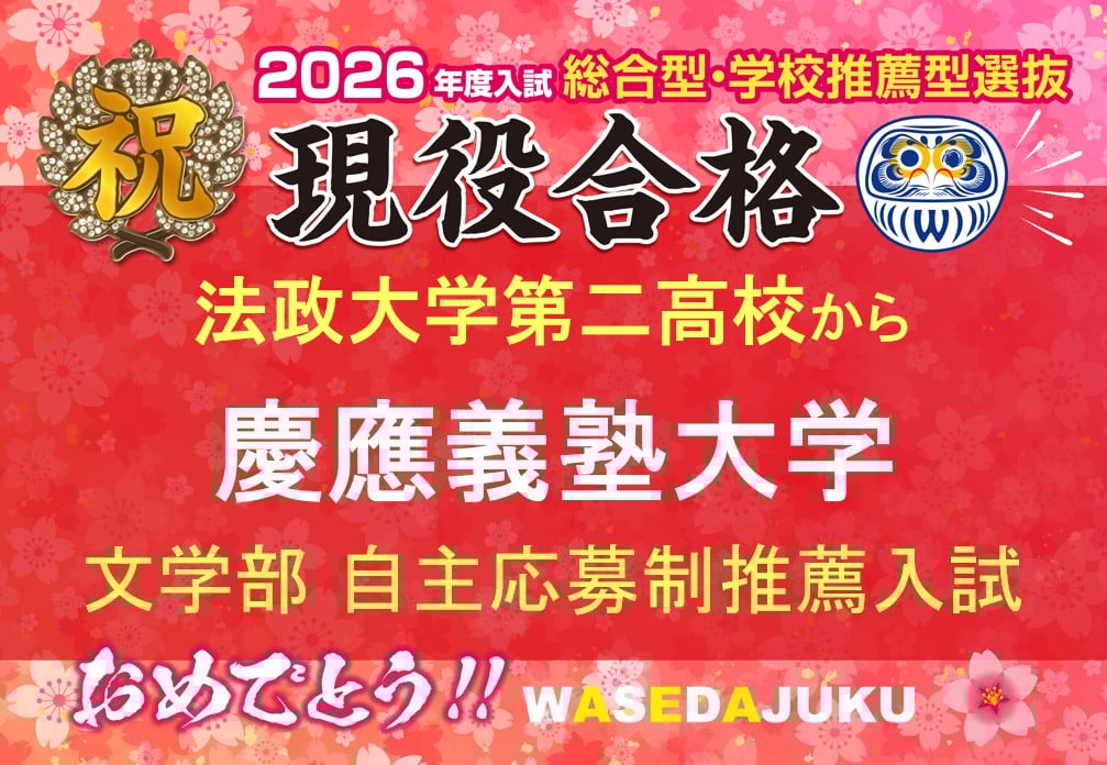 【2026年度入試 現高3生】法政大学第二高校から、慶應義塾大学文学部へ自主応募制推薦入試で合格!!