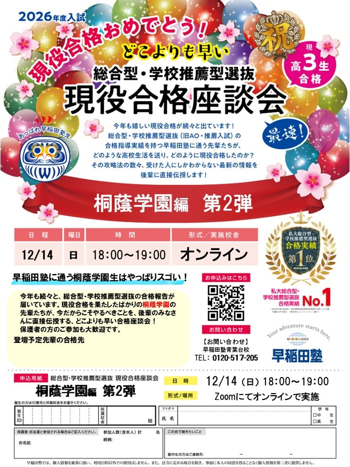 本日は『どこよりも早い!総合型・学校推薦型選抜 現役合格座談会第2弾 桐蔭学園高校編』第2弾開催のお知らせです!