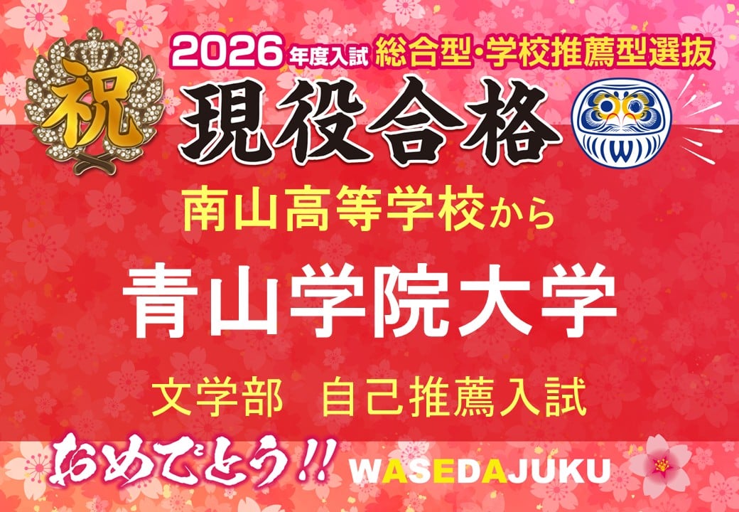 【2026年度入試 合格速報】南山高等学校から、青山学院大学文学部史学科に自己推薦入試で現役合格!