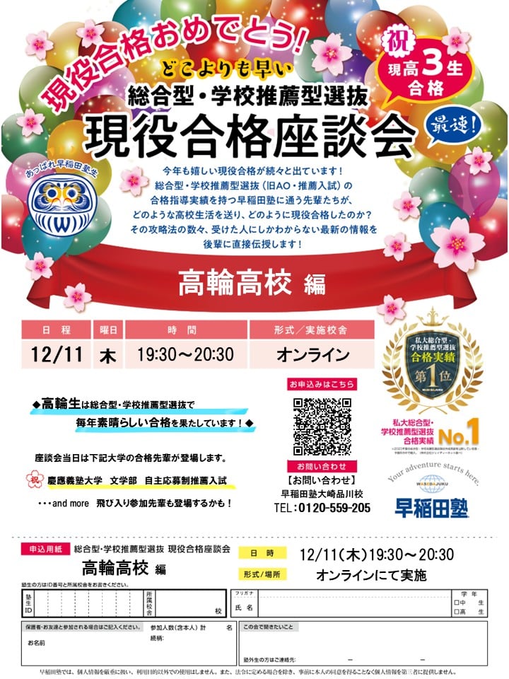 【高輪高校生必見!】どこよりも早い!「総合型・学校推薦型選抜 現役合格座談会 高輪高校編」開催のお知らせ