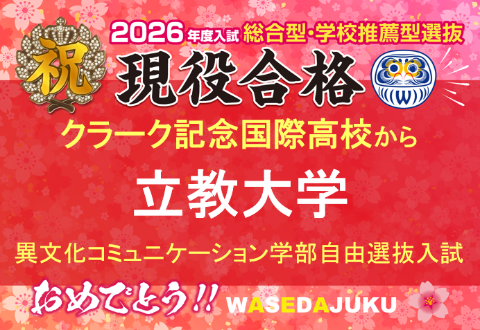 クラーク国際記念高校のSさん、立教大学 異文化コミュニケーション学部 異文化コミュニケーション学科に、自由選抜入試方式Bで現役合格です!