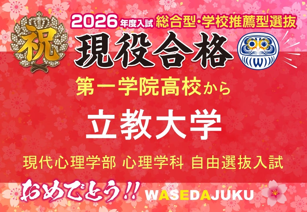 第一学院高校から、立教大学 現代心理学部 心理学科に自由選抜入試で現役合格です!
