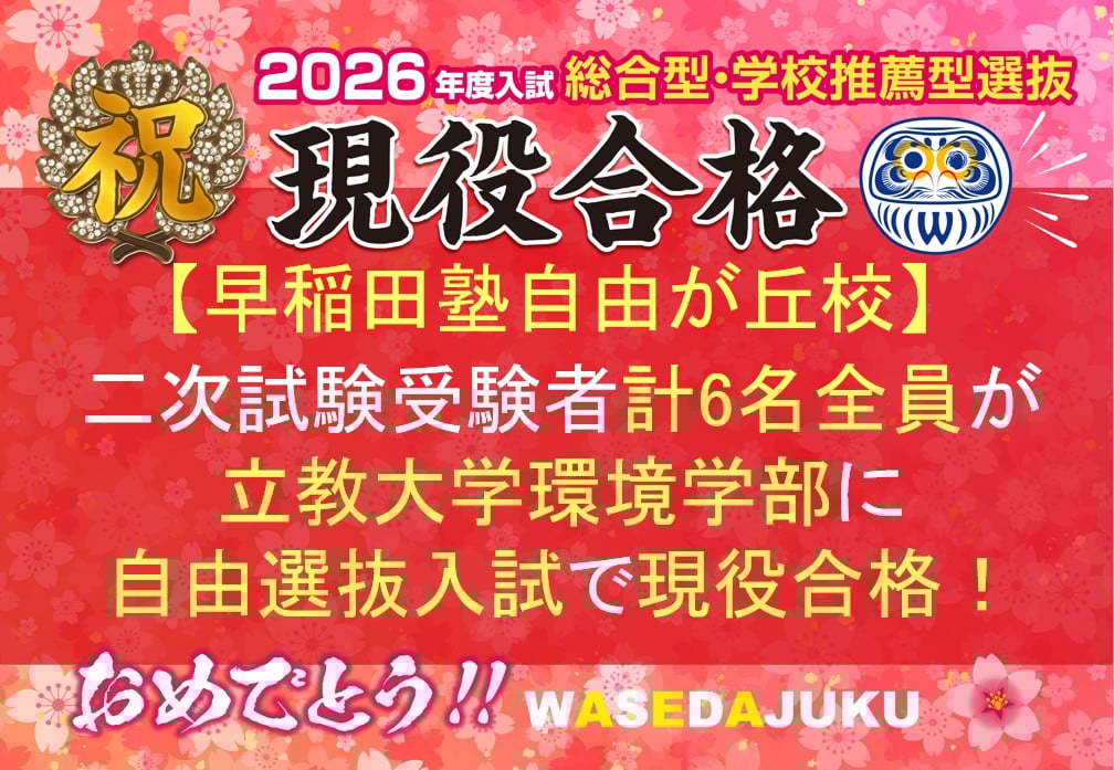 2026年4月に新設される環境学部の二次試験に受験した早稲田塾生6人全員合格です🌟