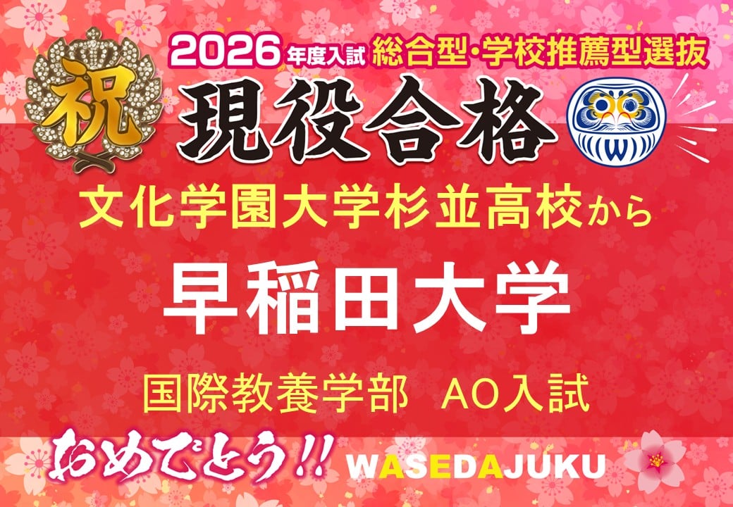 【2026年度入試 現高3生】文化学園大学杉並高校から、早稲田大学国際教養学部にAO入試で現役合格!