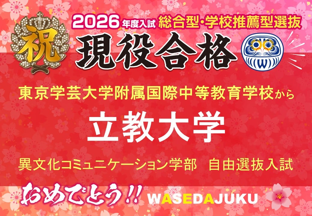 【2026年度入試 現高3生】東京学芸大学附属国際中等教育学校から、立教大学異文化コミュニケーション学部へ自由選抜入試で現役合格!