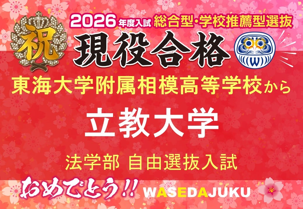 【合格速報】東海大学附属相模高等学校から立教大学法学部に自由選抜選抜で現役合格です!