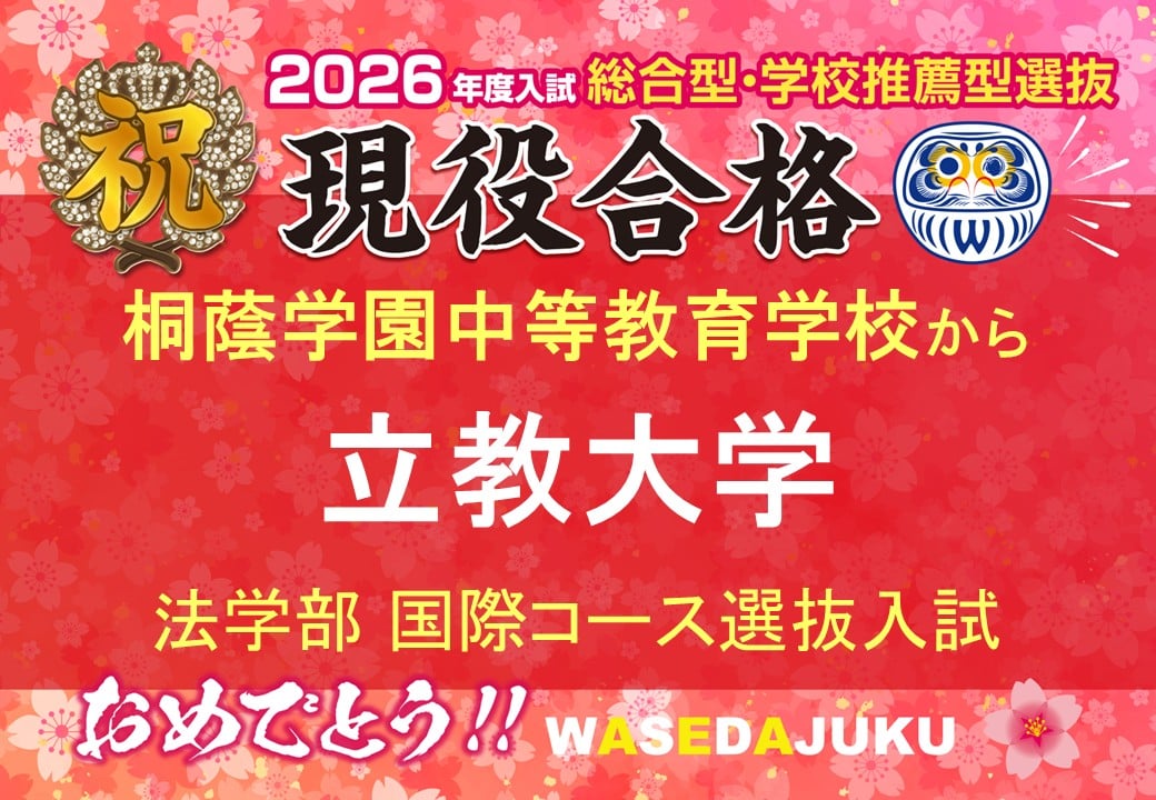 【合格速報】桐蔭学園中等教育学校から立教大学法学部に国際コース選抜で現役合格です!