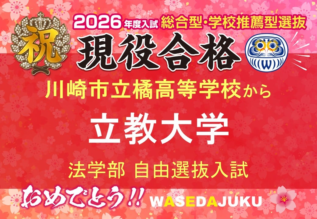 【合格速報】川崎市立橘高等学校から立教大学法学部に自由選抜選抜で現役合格です!