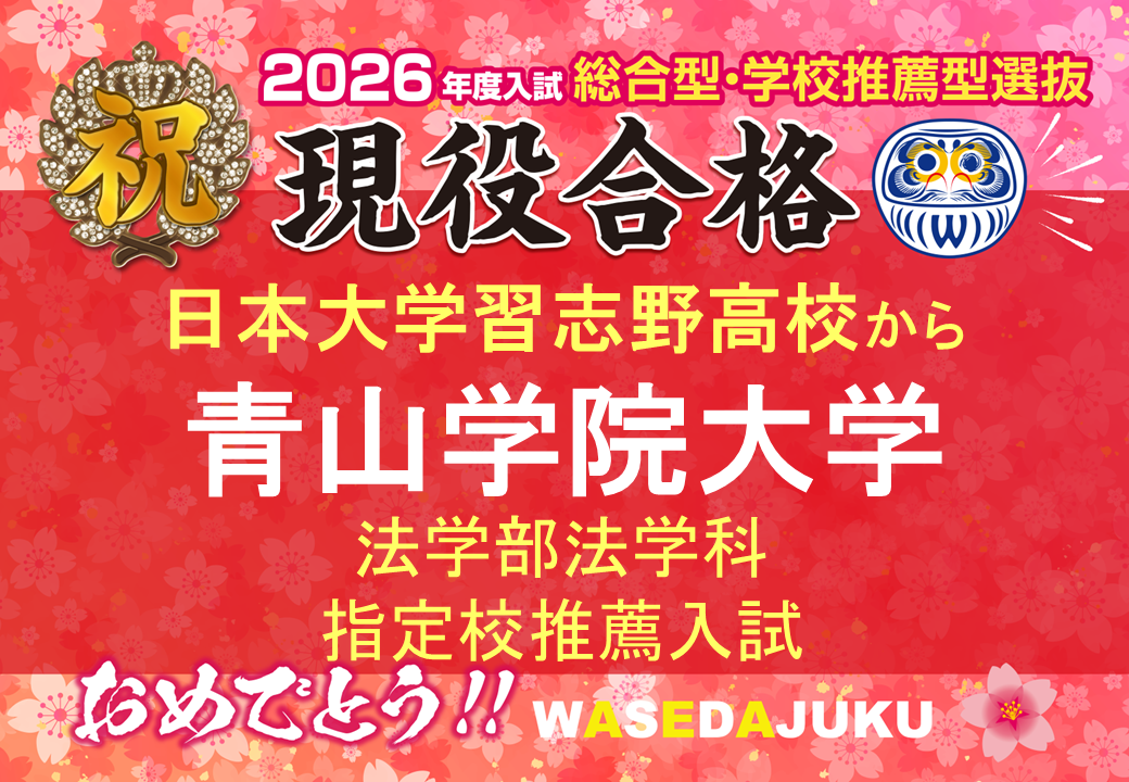 【2026年度入試 津田沼校現役合格速報】日本大学習志野高校から、青山学院大学法学部へ指定校推薦入試で現役合格!