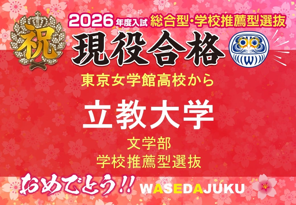 【2026年度入試 現高3生】東京女学館高校から、立教大学文学部に学校推薦型選抜で現役合格!