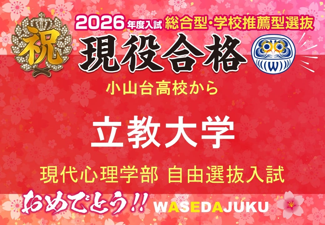 【2026年度入試 現高3生】小山台高校から、立教大学現代心理学部に自由選抜入試で現役合格!