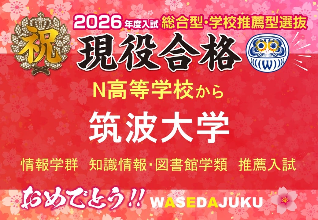 【2026年度入試 現高3生】N高等学校から、筑波大学情報学群 知識情報・図書館学類に推薦入試で現役合格!