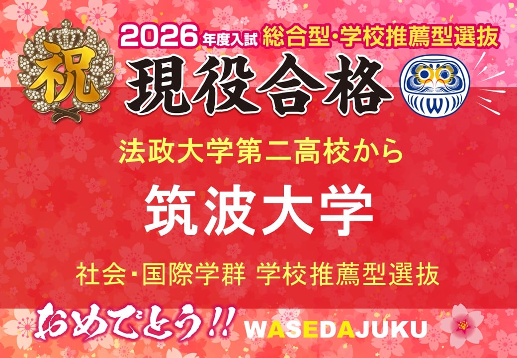 【2026年度入試 現高3生】法政大学第二高校から筑波大学社会・国際学群社会学類へ学校推薦型選抜 推薦入試で現役合格!
