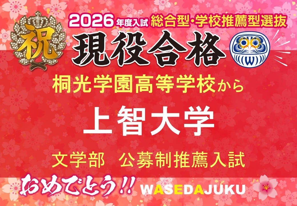 ☆早稲田塾生の合格インタビューを公開しているYouTubeは【コチラ】から!