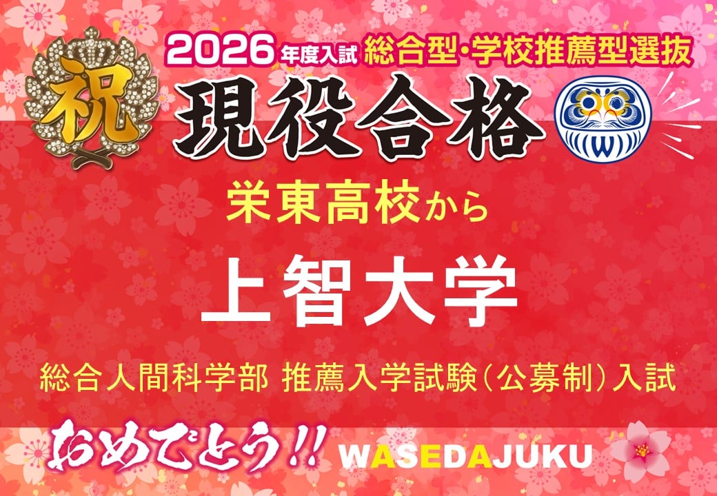 【2026年度入試 現高3生】栄東高校から、上智大学総合人間科学部へ推薦入学試験(公募制)入試で現役合格!