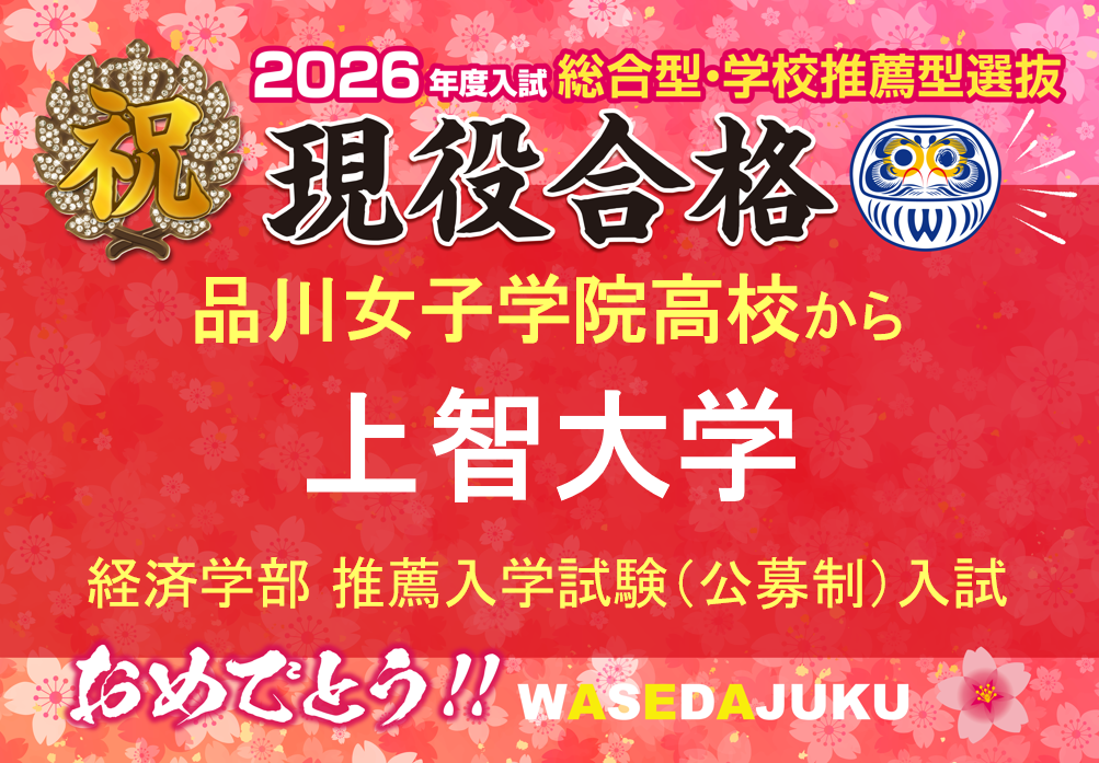 【2026年度入試 現高3生】品川女子学院高校から、上智大学経済学部へ推薦入学試験(公募制)入試で現役合格!