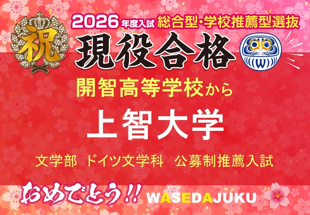 【2026年度入試 現高3生】開智高等学校から上智大学文学部ドイツ文学科へ公募制推薦選抜で現役合格!