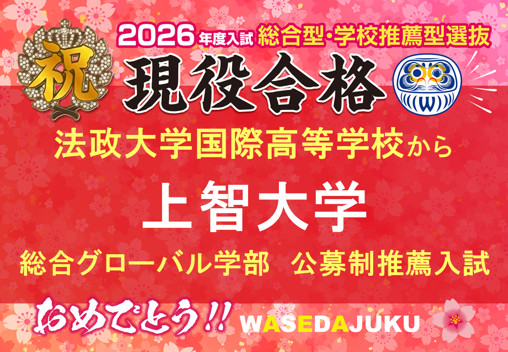 【2026年度入試 現高3生】法政大学国際高等学校から上智大学総合グローバル学部総合グローバル学科に公募制推薦型選抜 で見事現役合格!