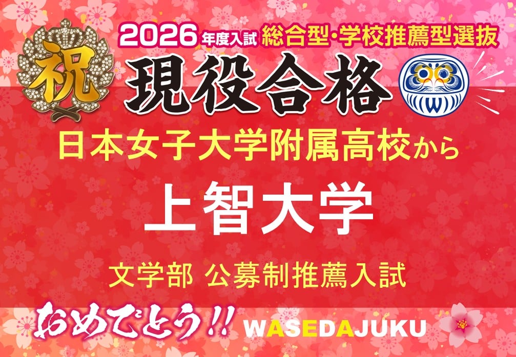 【2026年度入試 現高3生】日本女子大学附属高校から、上智大学 文学部へ公募制推薦入試で見事現役合格!