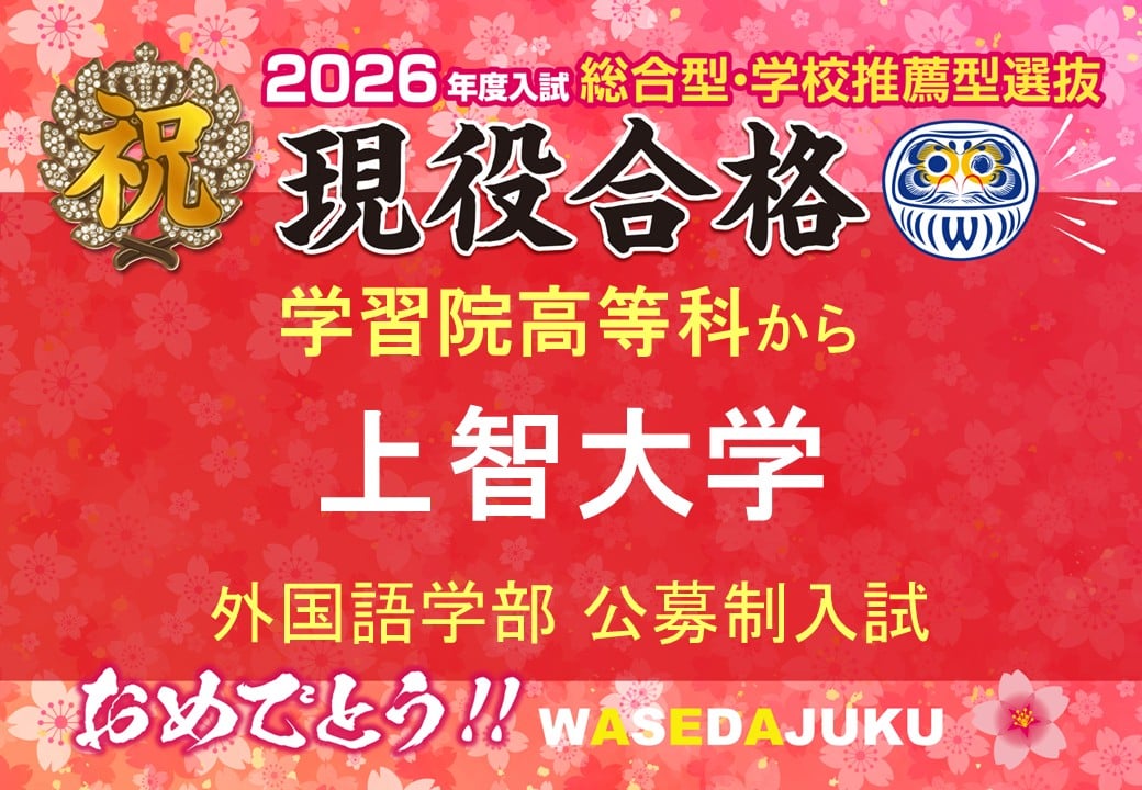 学習院高等科から、上智大学外国語学部に公募制入試で現役合格!