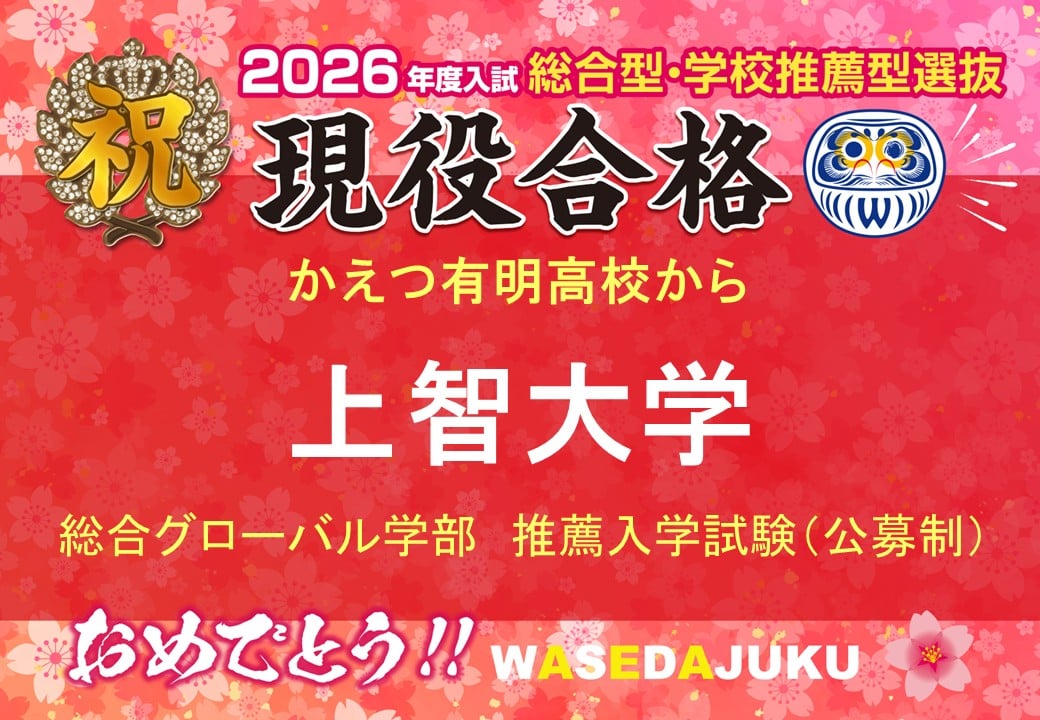 【2026年度入試 現高3生】かえつ有明高校から、上智大学総合グローバル学部に推薦入学試験(公募制)で現役合格!