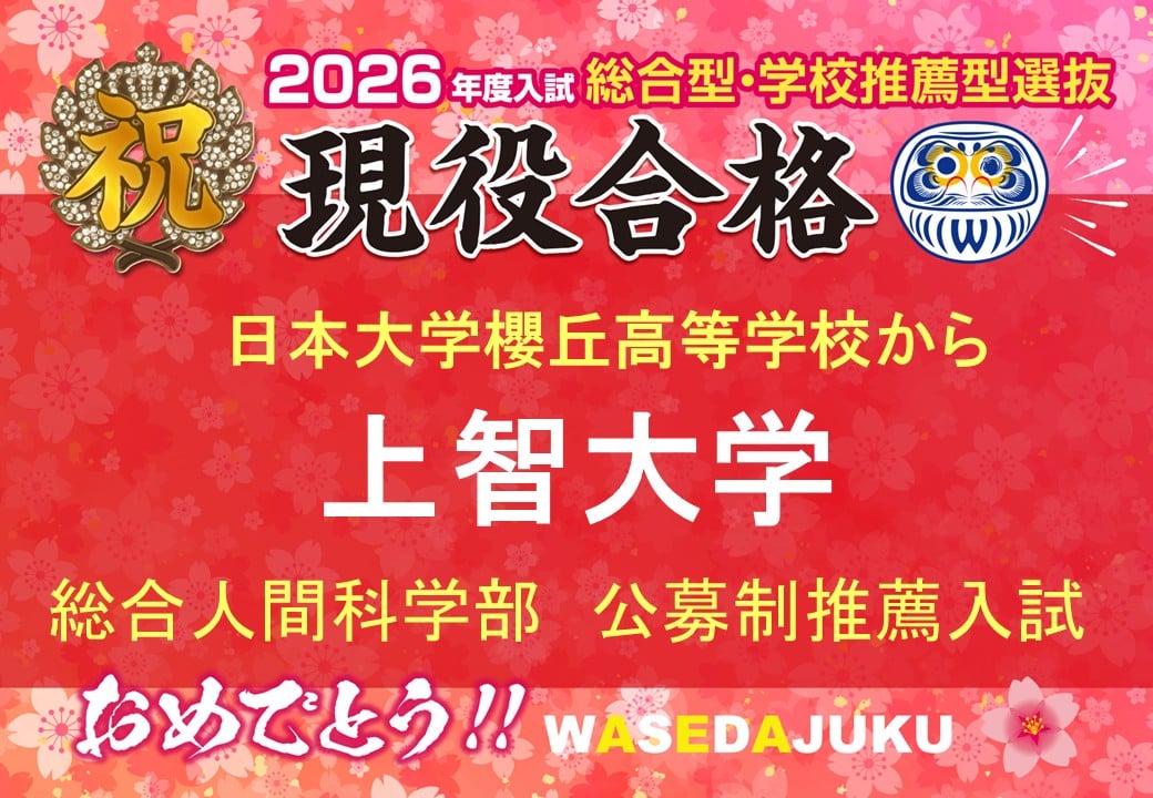 日本大学櫻丘高等学校から上智大学総合人間科学部社会学科に公募制推薦入試で見事現役合格です!