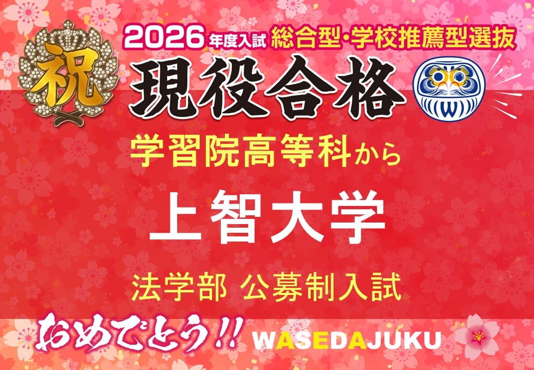 学習院高等科から、上智大学法学部に公募制入試で現役合格!