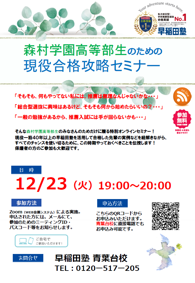 ☆現在、早稲田塾ではオンラインにてさまざまな説明会を行っています! お申込は【こちら】から!