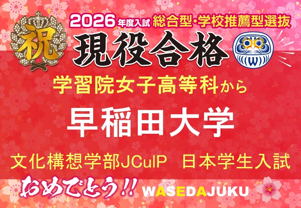 【2026年度入試 現高3生】学習院女子高等科から、早稲田大学文化構想学部JCulPに日本学生入試で現役合格!
