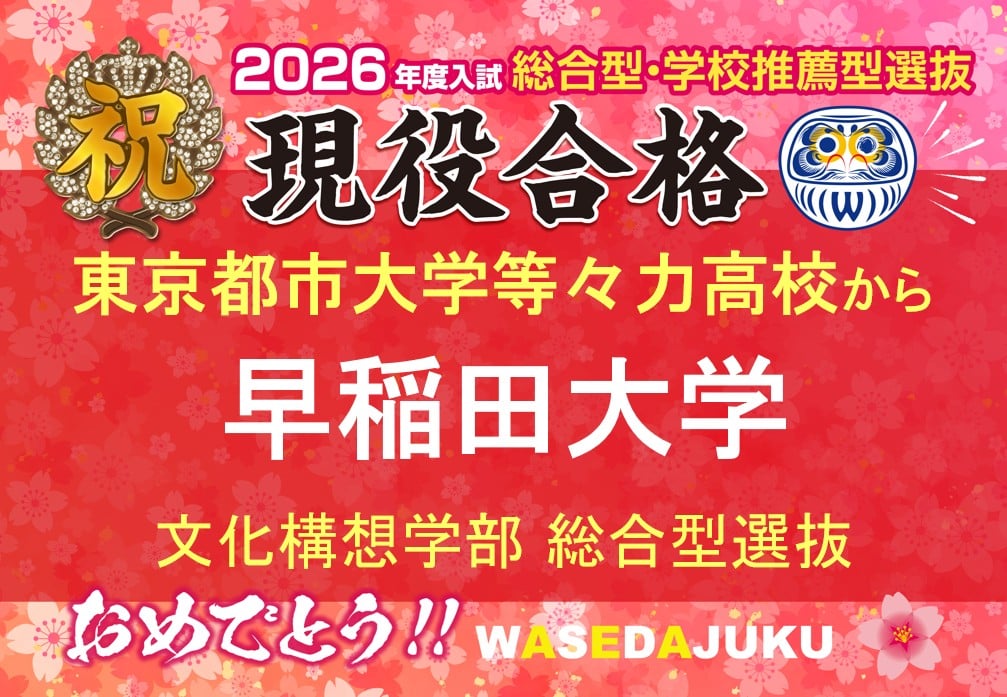 【2026年度入試 現高3生】東京都市大学等々力高校から、早稲田大学文化構想学部へ総合型選抜で見事現役合格!