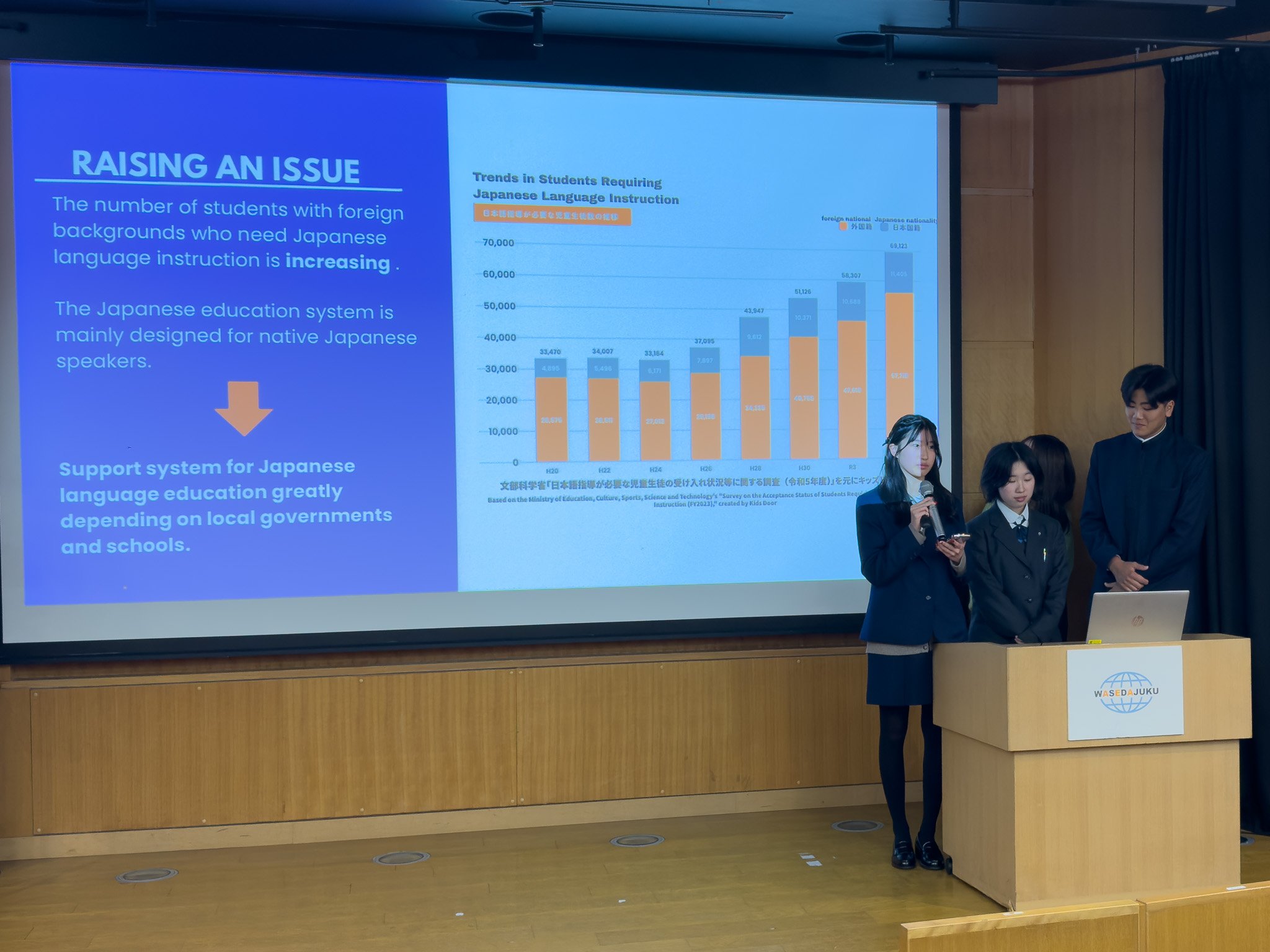 「竹中平蔵 世界塾」担当の有田忠史(早稲田塾新宿校 校舎長)です。クリスマスの本日、「第14期 竹中平蔵 世界塾」の修了式を実施しました。今日は、昨日まで行っていた冬期講習で準備をしたプレゼンテーションからスタートです。