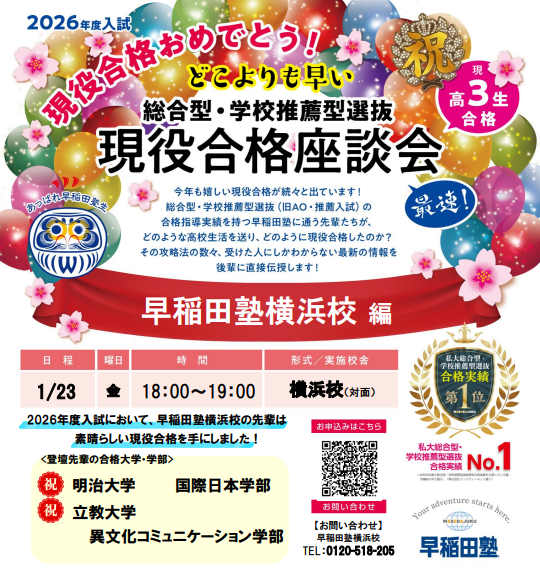 【1月も座談会開催】『どこよりも早い総合型・学校推薦型選抜現役合格座談会-早稲田塾横浜校編-』に集合!