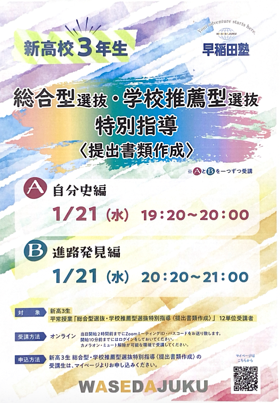 【新高校3年生 総合型・学校推薦型選抜特別指導<提出書類>】