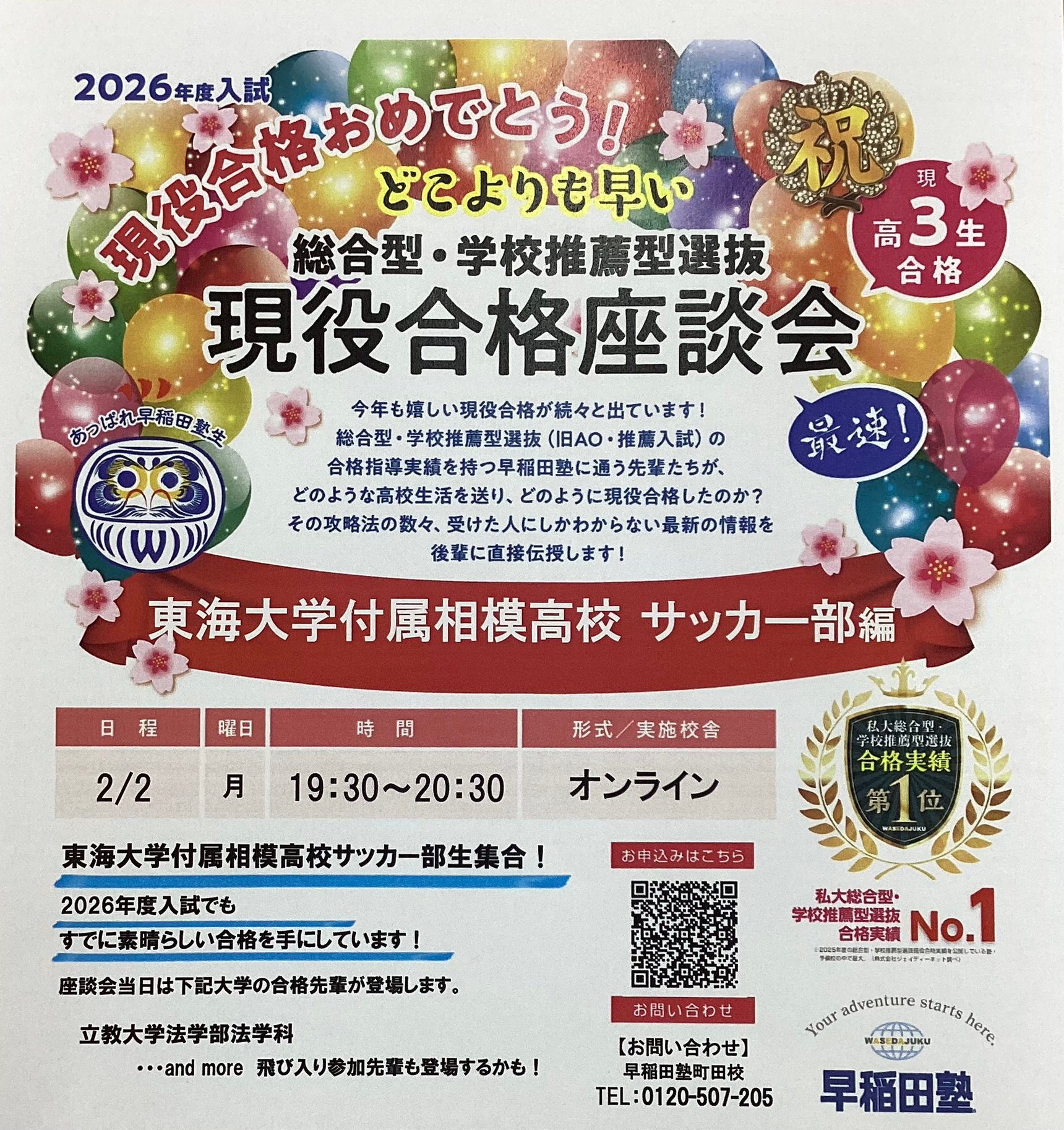 【東海大学附属相模高校サッカー部必見!】どこよりも早い 総合型・学校推薦型選抜 現役合格座談会 開催実施のお知らせ