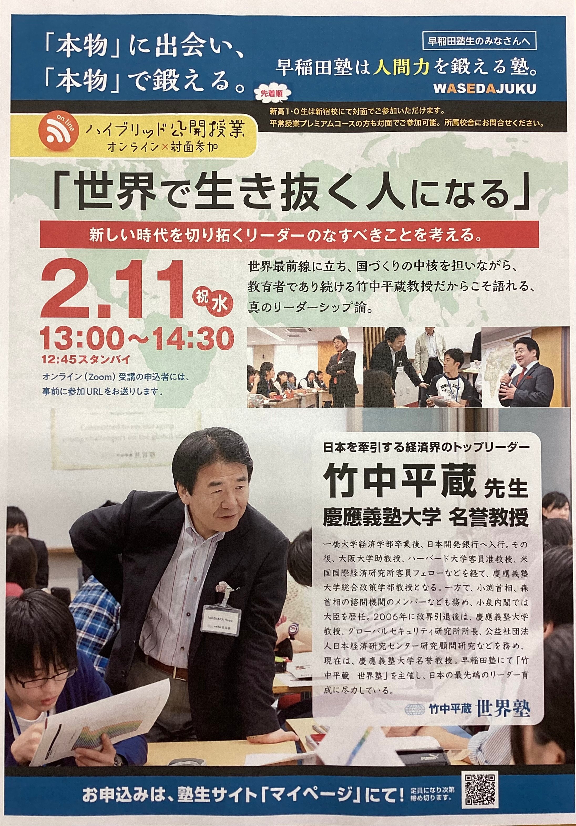 早稲田塾生必見!竹中平蔵先生による特別講義