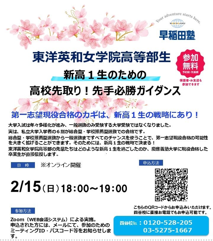 東洋英和女学院高等部新1年生のための大学入試攻略セミナーを開催します!