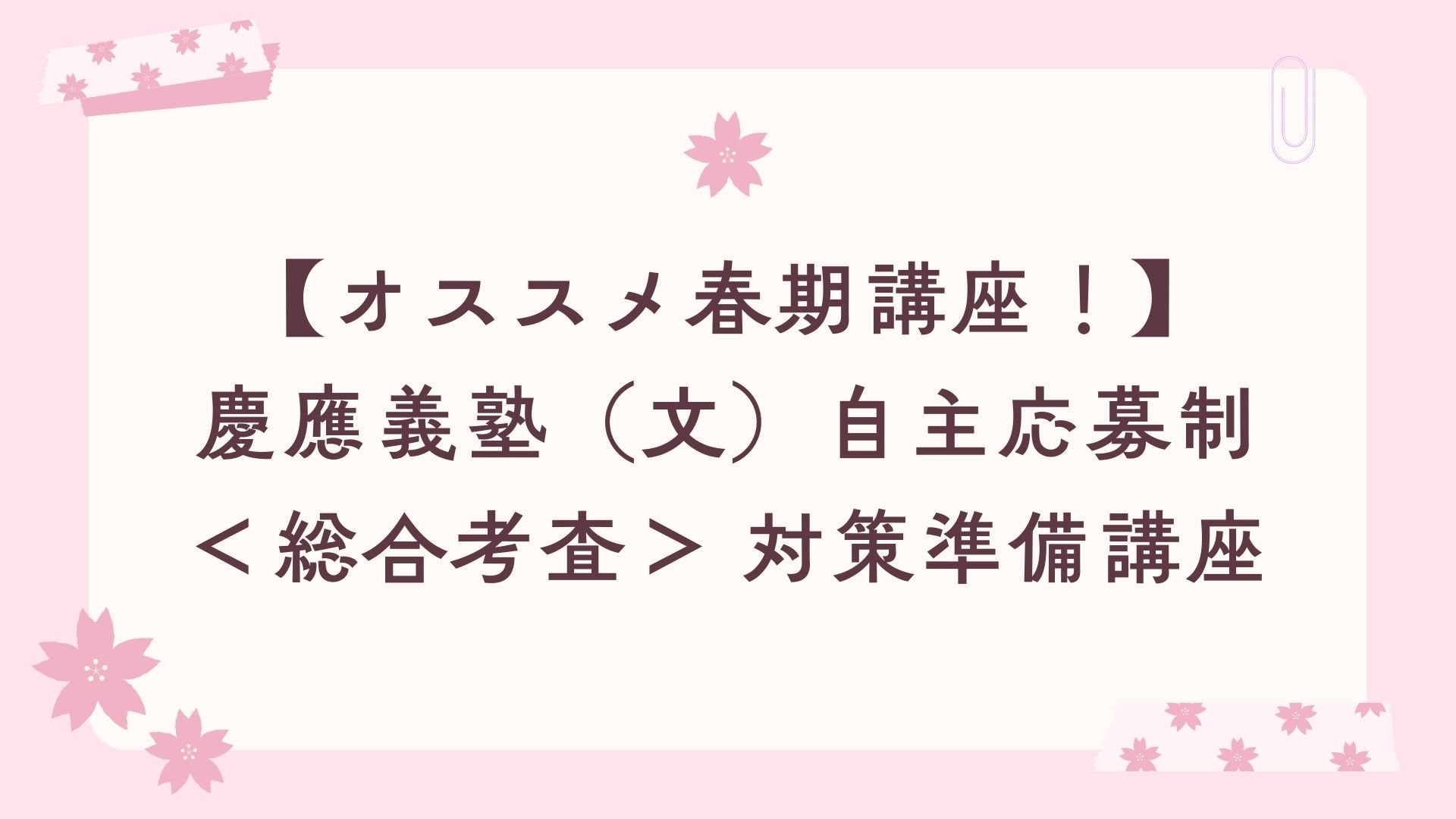 【オススメ春期講座紹介!🔥】「新高3・2 慶應義塾(文) 自主応募制 <総合考査> 対策準備講座」編