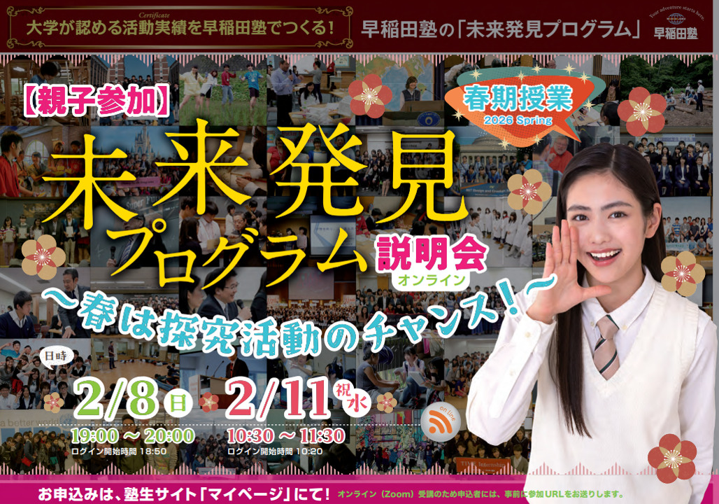 ☆現在、早稲田塾ではオンラインにてさまざまな説明会を行っています! お申込は【こちら】から!