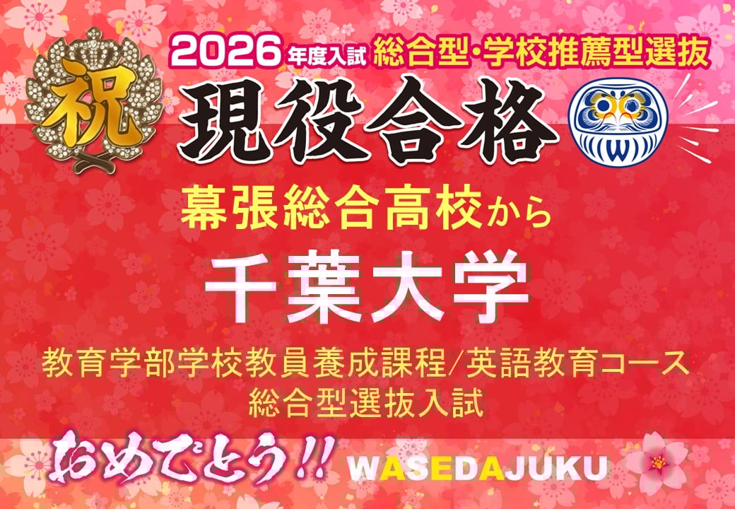 【2026年度入試 津田沼校現役合格速報】幕張総合高校から、千葉大学教育学部へ総合型選抜入試で現役合格!