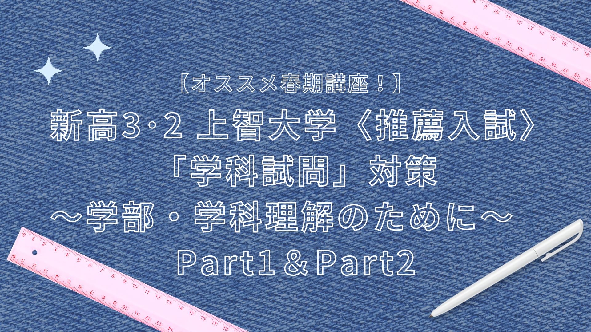 今回は「新高3・2 上智大学〈推薦入試〉「学科試問」対策~学部・学科理解のために~ Part1&Part2」です✨