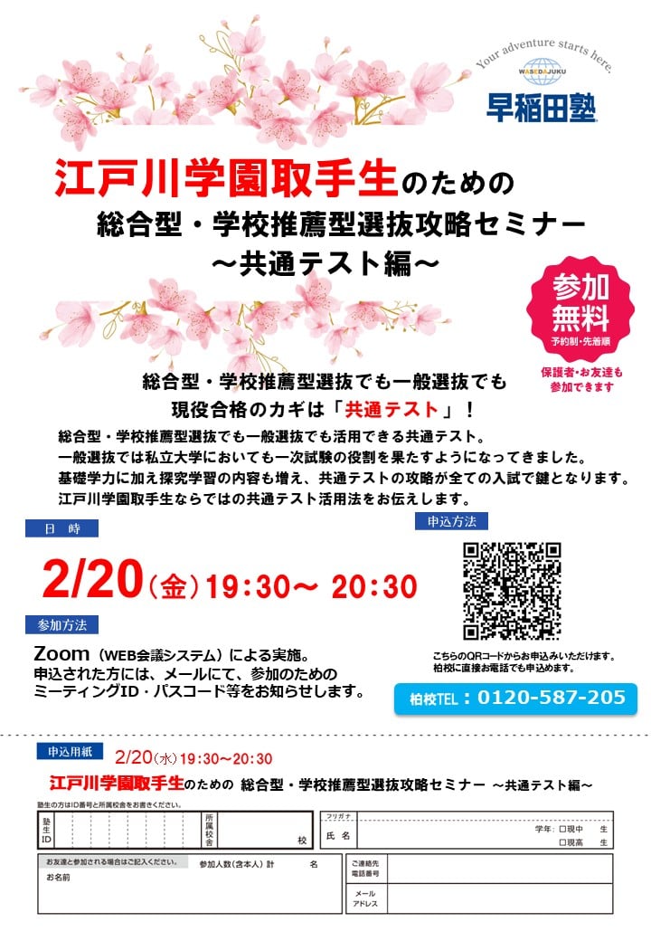 【江戸川学園取手高校生必見】『 江戸川学園取手生のための総合型・学校推薦型選抜攻略セミナー ~共通テスト編~』のお知らせ