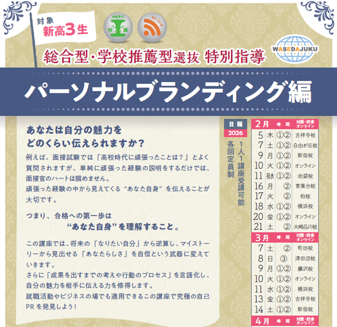 本日は、総合型・学校推薦型選抜特別指導 パーソナルブランディング編のご紹介です!
