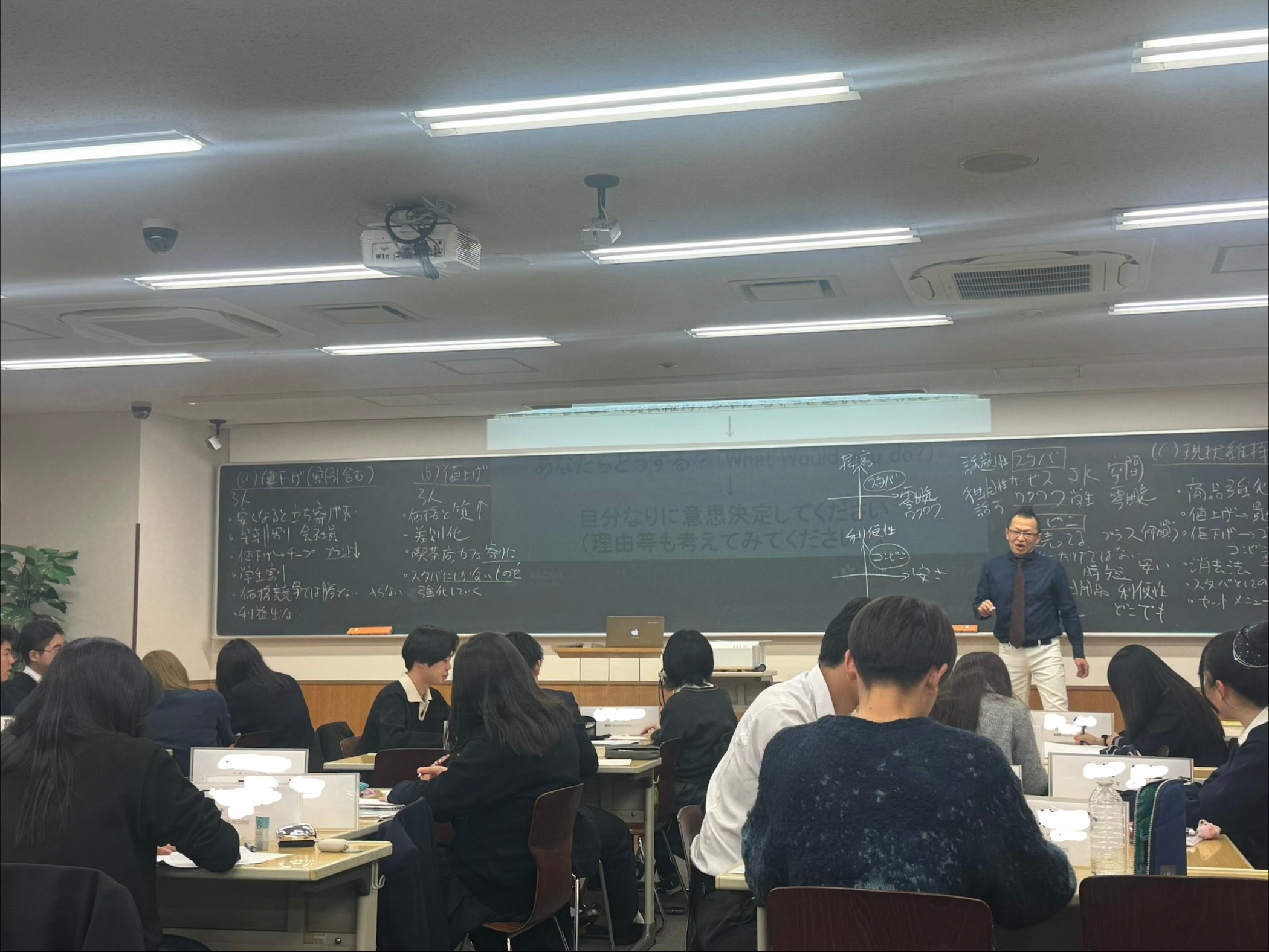 様々な意見を出した上で、「何に重きを置いているのか」という分析をしました。重視しているところは何かを考えることで、ビジネスでの見方が変わり、お客様に向けたアプローチも変わることを学びました。違う人の立場に立って考えることがケースメソッドです!
