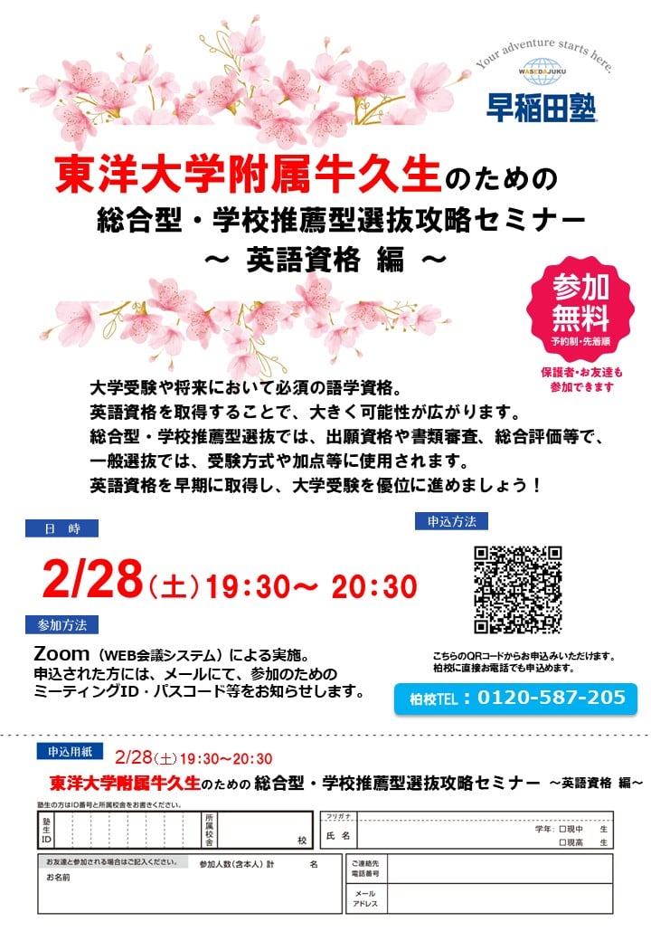 ☆興味がある方は、ぜひ早稲田塾柏校(電話番号:0120-587-205)までお気軽にお電話ください!