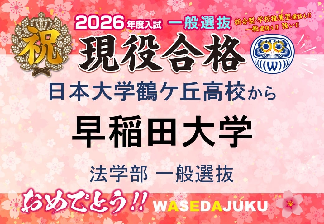 最難関!早稲田大学法学部[一般選抜]を見事突破!