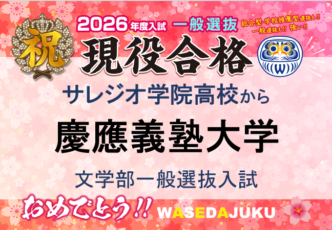 【合格速報】サレジオ学院高校から慶應義塾大学文学部に一般選抜入試で現役合格です!